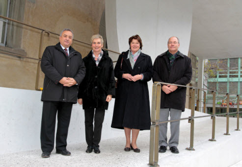 Gute Kontakte zwischen Chur und Vaduz: Landtagspräsident Arthur Brunhart, Standesvizepräsidentin Elita Florin-Caluori, Landtagsvizepräsidentin Renate Wohlwend sowie Standespräsident Ueli Bleiker (von links) vor dem Eingang des Grossratsgebäudes.