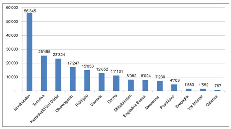 Innerhalb Graubündens verläuft die Bevölkerungsentwicklung uneinheitlich; am meisten Bevölkerung dazugewonnen haben 2011 die Regionen Mesolcina (+1,9 %) und Poschiavo (+1,6 %) sowie das Oberengadin (+1,1 %). Die grössten prozentualen Verluste haben das Val Müstair (-2,5 %) sowie die Regionen Bregaglia (-1,1 %) und Mittelbünden (-0,8 %) erlitten.