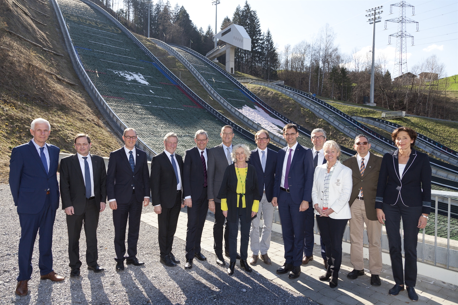 Regierungstreffen im Schanzenzentrum Montafon in Tschagguns (im Bild v.l.: Kanzleidirektor Claudio Riesen, Landesamtsdirektor Günther Eberle, Regierungsrat Christian Rathgeb, Landesrat Erich Schwärzler, Landesstatthalter Karlheinz Rüdisser, Landesrat Christian Bernhard, Landesrätin Katharina Wiesflecker, Landesrat Johannes Rauch, Landeshauptmann Markus Wallner, Regierungsrat Jon Domenic Parolini, Regierungspräsidentin Barbara Janom Steiner, Regierungsrat Martin Jäger und Landesrätin Bernadette Mennel)