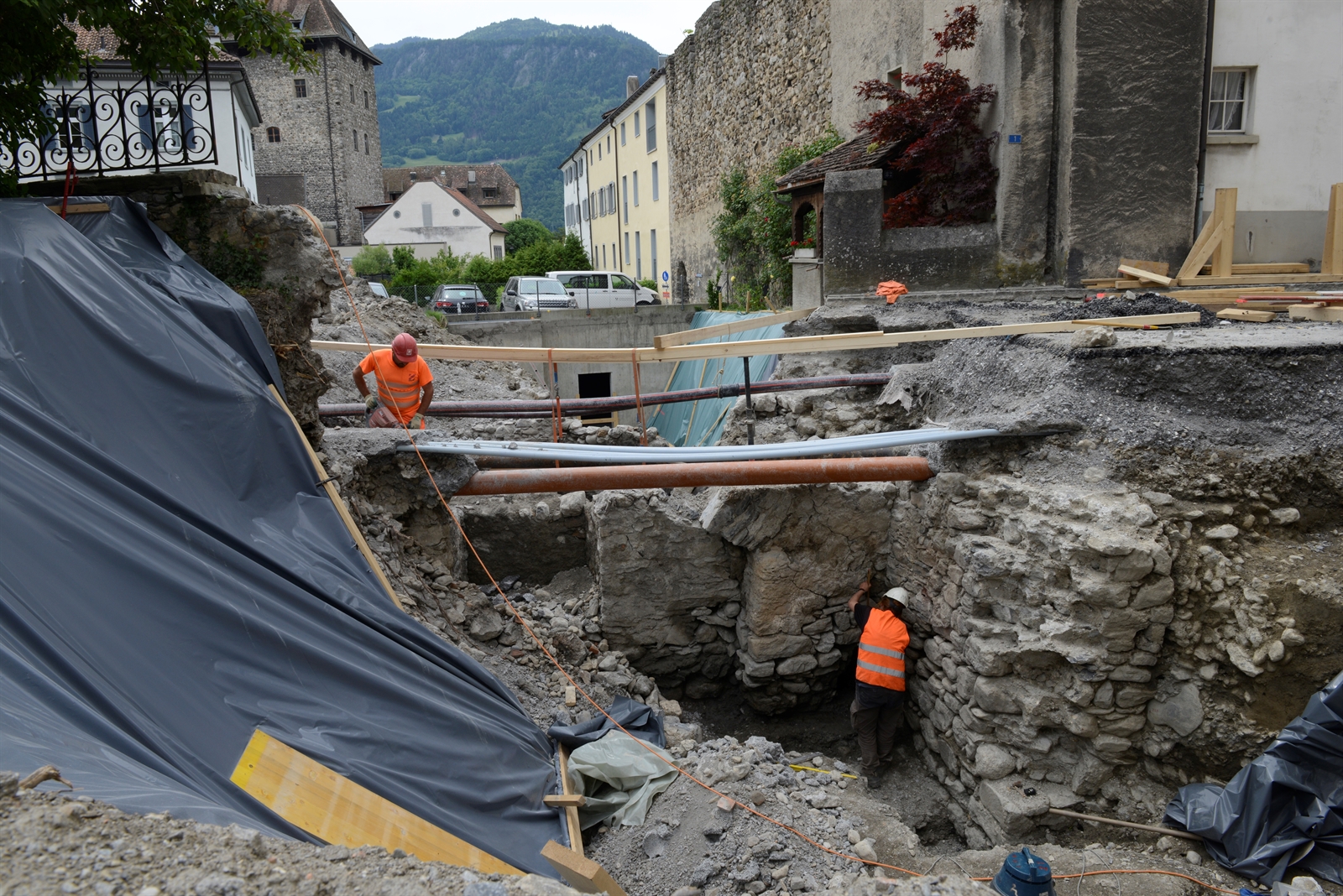 Bei Bauarbeiten in der Stadt Maienfeld wurden Reste des historischen "Churer Tors" zu Tage gefördert.