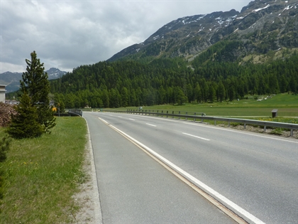Die Regierung genehmigt das Auflageprojekt für die Korrektion und Lärmsanierung der Engadinerstrasse am Dorfeingang von St. Moritz Richtung Silvaplana.