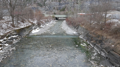 bevor sie in den Alpenrhein mündet. Die Flusssohle des Kanals unterliegt einer