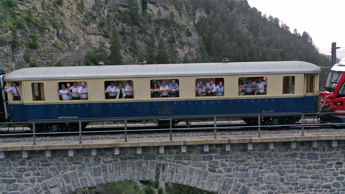 Mit einem spannenden Rahmenprogramm und einem würdigen Veranstaltungsort schafft Graubünden gute Voraussetzungen für eine erfolgreiche Plenarversammlung. Bereits gestern Abend reisten die KdK-Mitglieder mit dem historischen Pullman-Wagen der Rhätischen Bahn von Chur nach Bergün. Nach einer kurzen Führung durch das Bahnmuseum liessen sie den Tag im Kurhaus Bergün ausklingen.