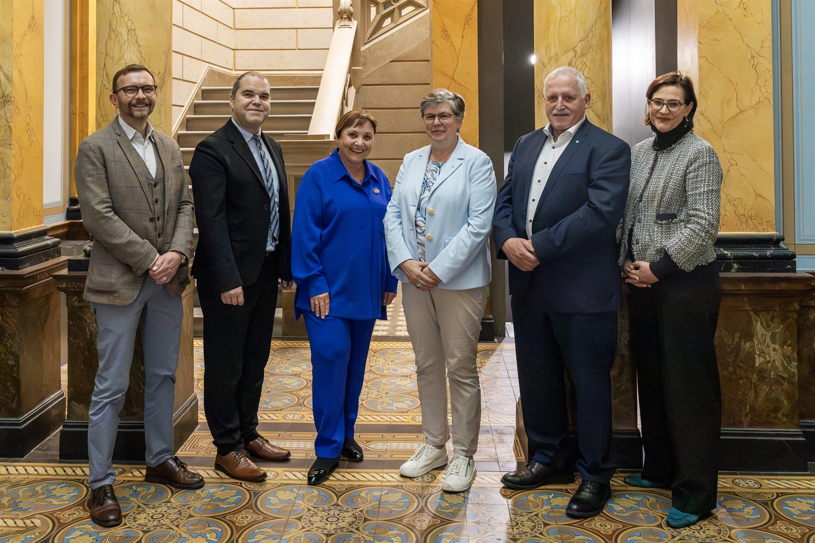 Im Rahmen des 3. Luzisteig-Treffens begrüssten Standespräsidentin Silvia Hofmann und Standesvizepräsidentin Valérie Favre Accola heute die Kantonsratspräsidentin Barbara Dürr und den Kantonsratsvizepräsidenten Walter Freund aus unserem Nachbarkanton St. Gallen sowie aus dem Fürstentum Liechtenstein den Landtagspräsidenten Manfred Kaufmann zu einem Gesprächsaustausch in Chur. Begleitet wurde die Delegation von Ratssekretär Patrick Barandun.