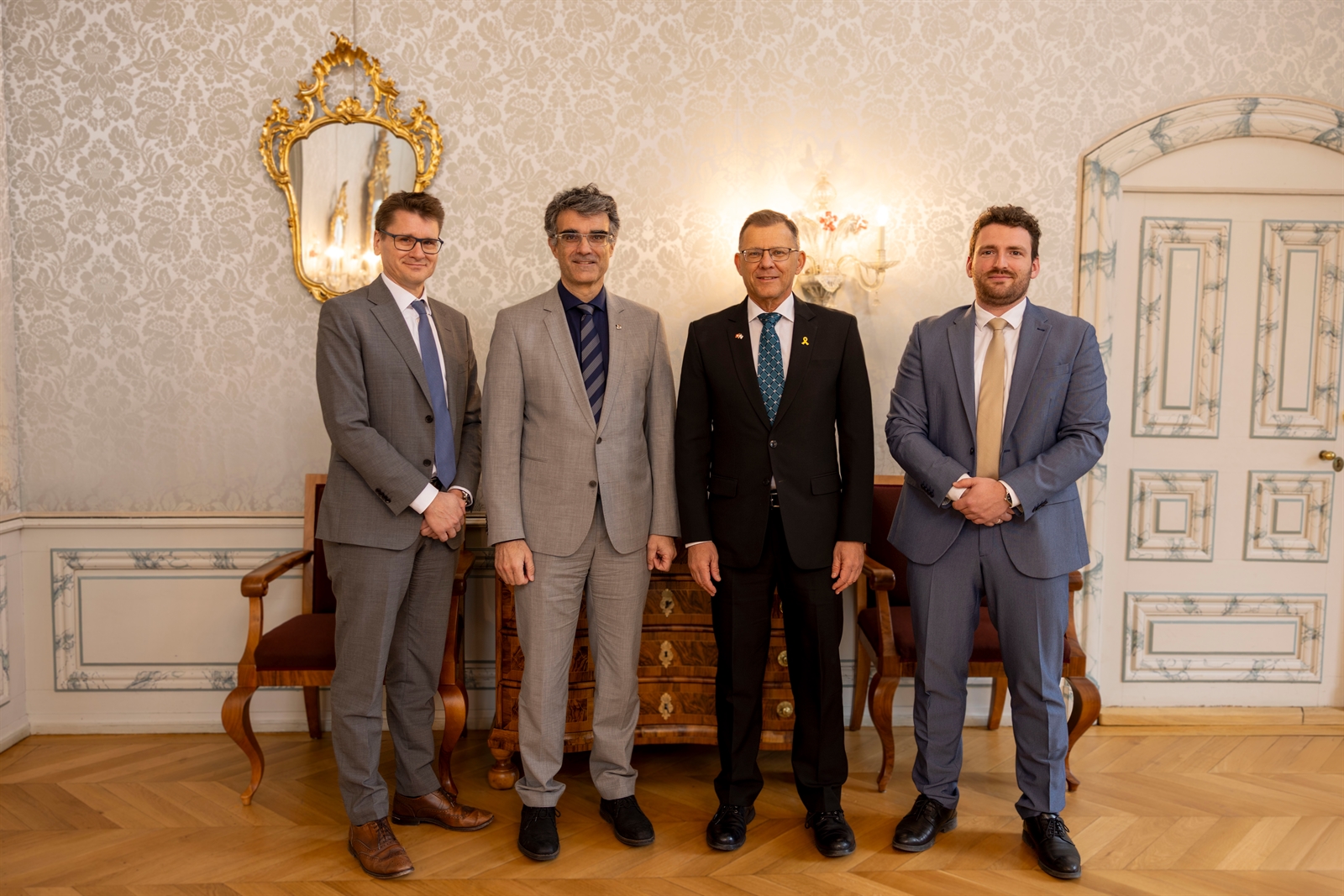 v.l.n.r. Kanzleidirektor Daniel Spadin, Regierungspräsident Marcus Caduff, Botschafter Tibor Shalev Schlosser und Dominik Hemmi
