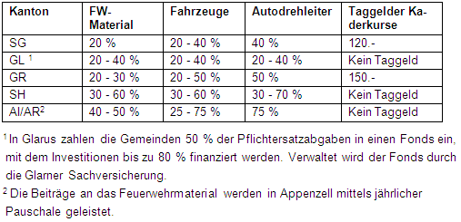2. Die Ostschweizer Kantone leisten wie folgt Beiträge an die Ortsfeuerwehren: