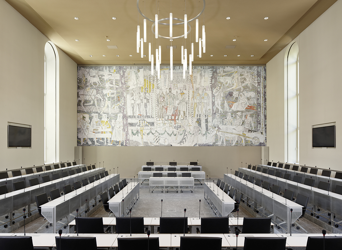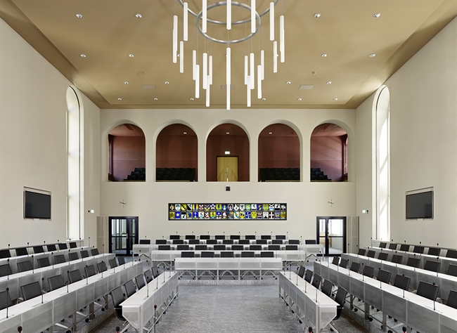 Die Abstimmungs- und Mikrofonanlage wurde in die Arbeitsplätze der Grossrätinnen und Grossräte integriert. Auf Displays im Grossratsaal, auf der Tribüne sowie im Foyer werden Debatten präsentiert und Abstimmungsresultate dargestellt. Die Steuerung der Abstimmungsanlage erfolgt am Arbeitsplatz des Ratspräsidiums, bzw. des Protokollführers. Neu ist der Saal mit einer zeitgemässen Projektionstechnik ausgerüstet und verfügt über ein kabelloses Netzwerk für den Internetzugang.