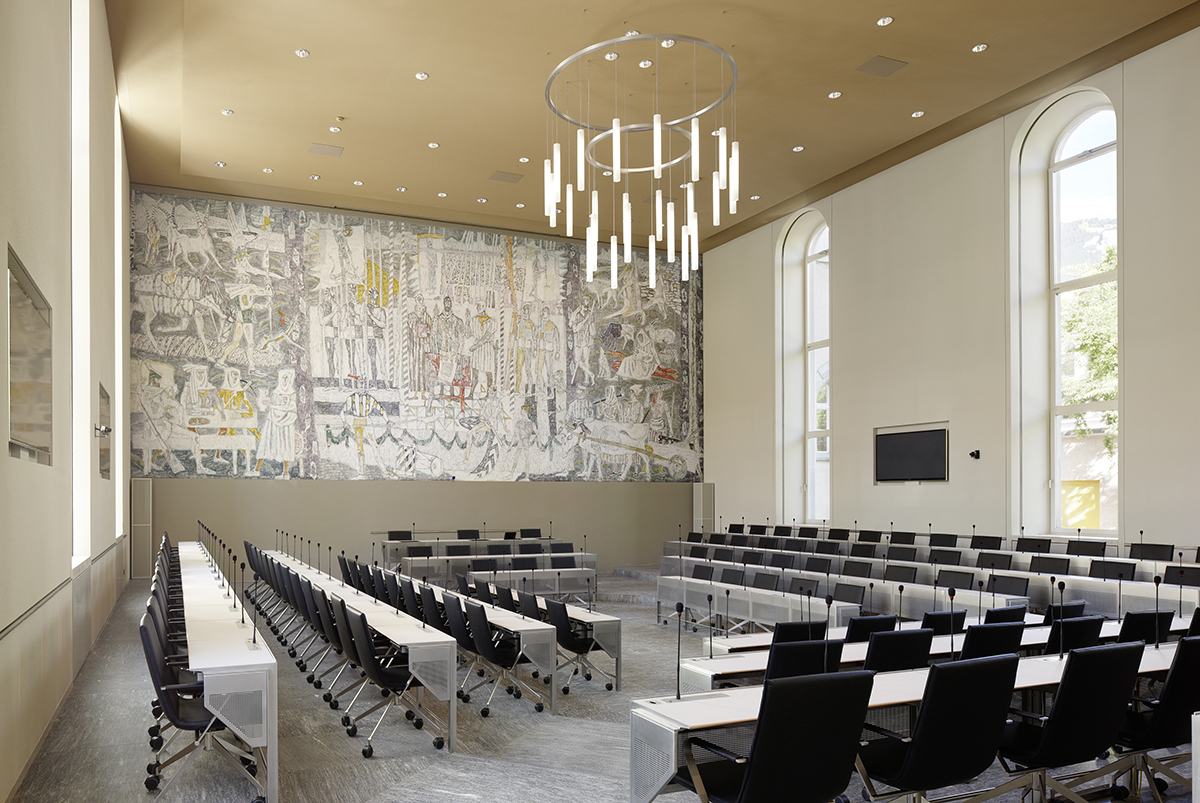 Die umfangreichen und anspruchsvollen Bauarbeiten wurden zwischen der April- und der Augustsession 2012 ausgeführt. Das Baufenster von vier Monaten war durch den Ratsbetrieb und die Auswärtssession im Juni in Samnaun vorgegeben.