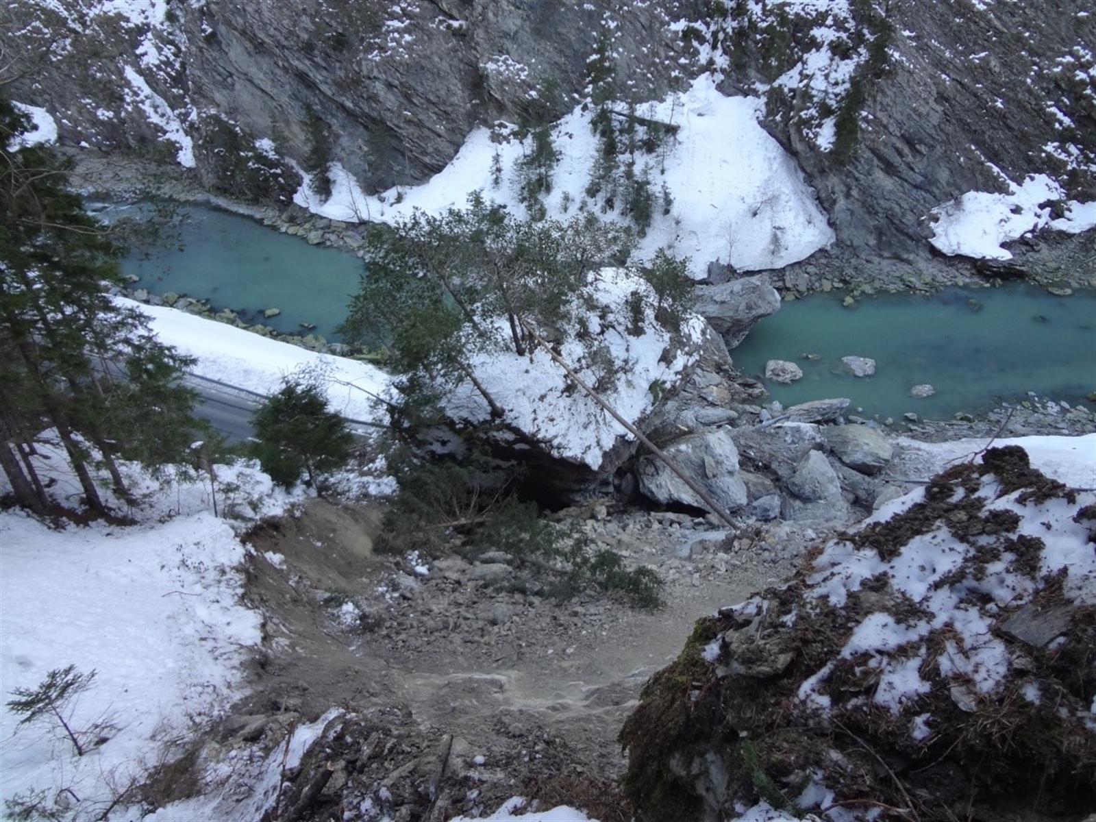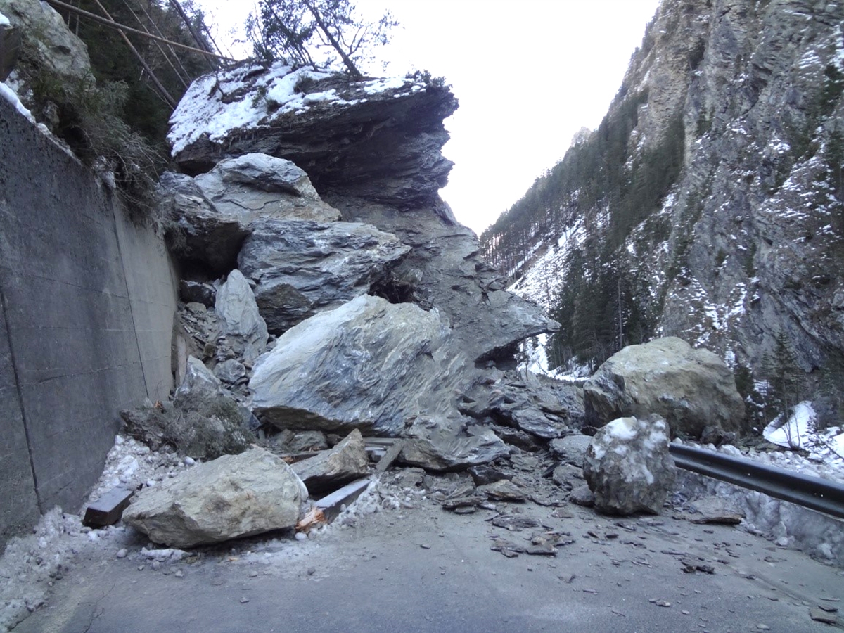 Die Strasse dürfte durch den Felssturz stark beschädigt worden sein. Derzeit werden die notwendigen geologischen Abklärungen für die anstehenden Arbeiten durchgeführt. Nach ersten Erkenntnissen wurde der Felssturz durch die starken Niederschläge der letzten Tage sowie die derzeitigen Frost-Tau-Zyklen ausgelöst. Die Sicherung des Abrissgebiets sowie die Aufräum- und Instandsetzungsarbeiten, für welche auch Sprengungen einzelner Felsblöcke notwendig sind, bedingen eine Sperrung des Strassenabschnitts für mehrere Wochen.