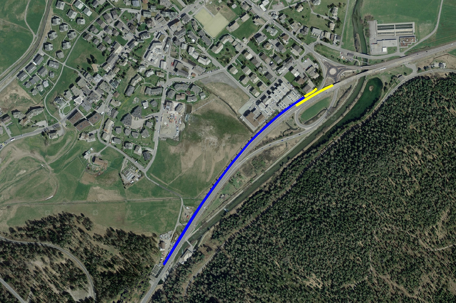 (Lärmschutzwand gelb: Kanton / blau: Gemeinde)