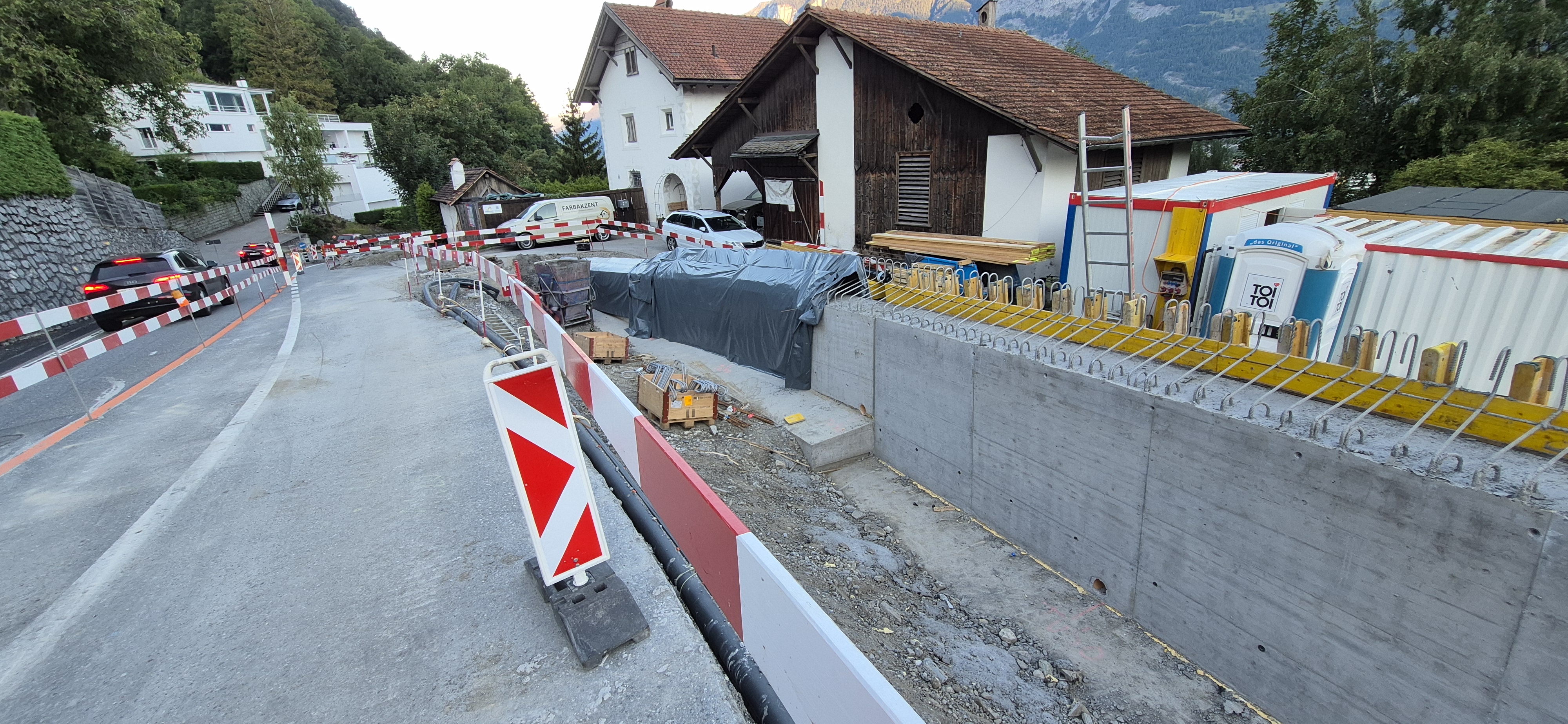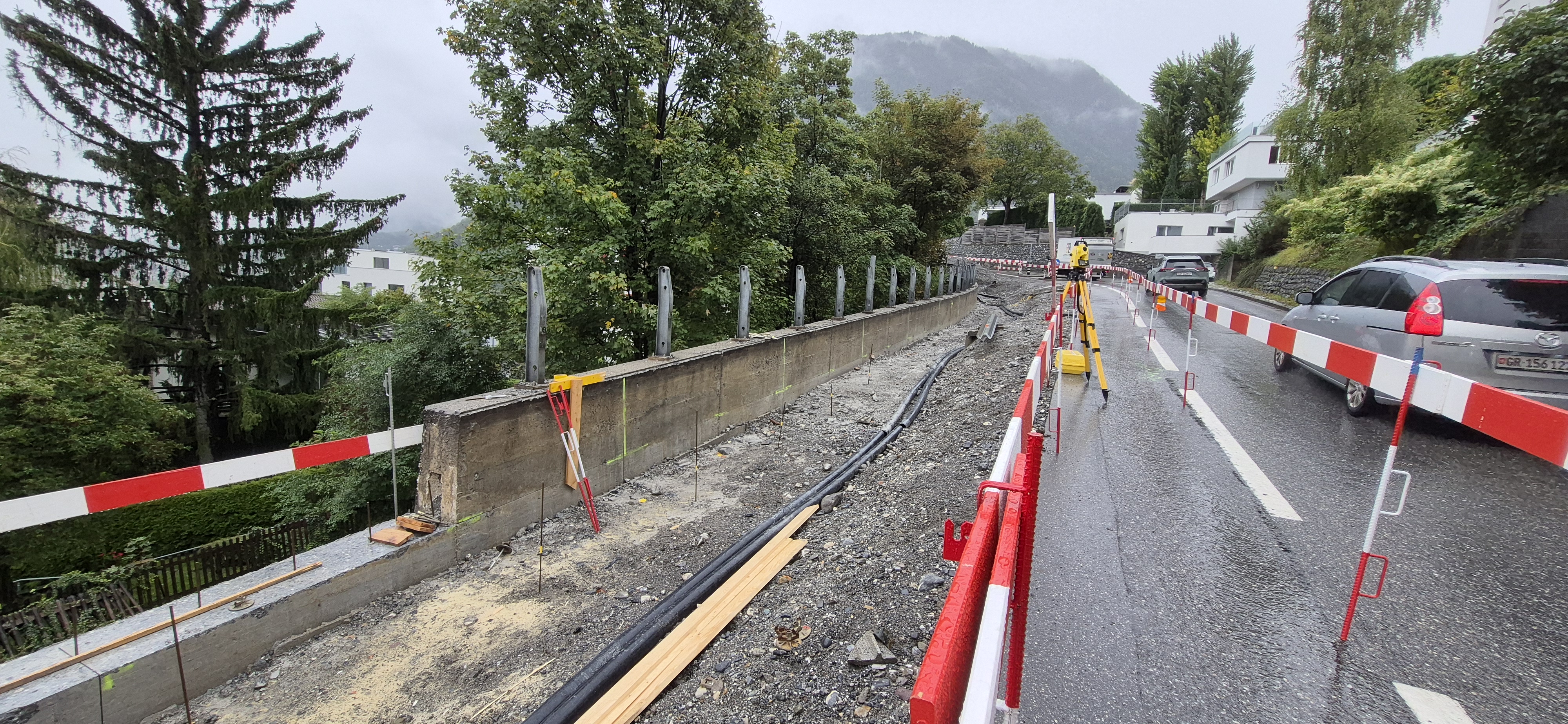 Neben den aufwendigen Werkleitungsbauten wird auch ein Teil der bestehenden bergseitigen Betonmauer instandgesetzt.