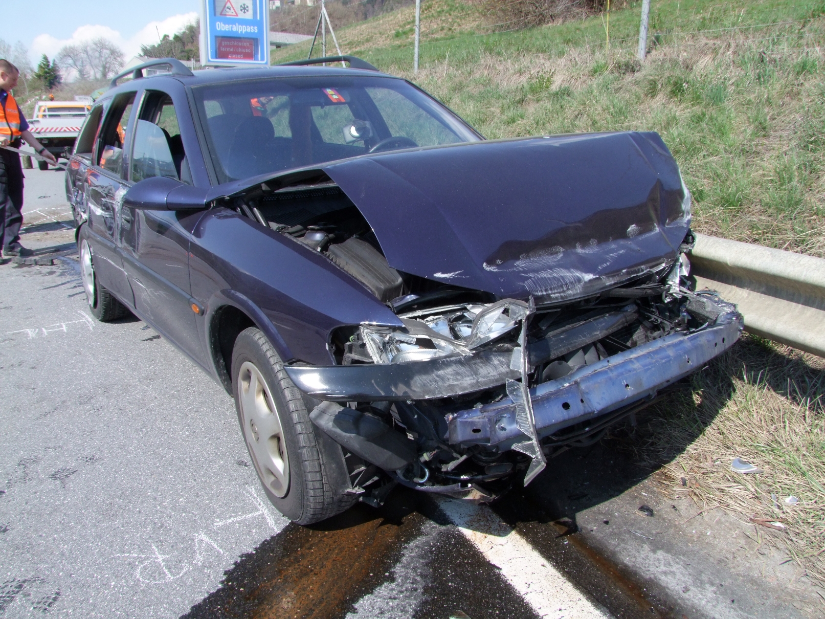 Eine Automobilistin, welche in Richtung Oberland unterwegs war, verliess die Autobahn A13 bei der Ausfahrt Flims. Anschliessend bog sie mit ihrem Fahrzeug in die Oberalpstrasse ein und schloss kurz darauf auf einen Lastwagen auf. Nun meldete ihr Navigationsgerät gemäss eigenen Aussagen, sie solle nach links halten, was sie dann auch tat. Sie überholte den Lastwagen und bemerkte, dass andere Fahrzeuge ihr entgegen kamen. So rasch als möglich versuchte sie, das Überholmanöver abzuschliessen, um wieder auf ihre Spur zu kommen. Dabei kollidierte sie frontal-seitlich mit einem entgegenkommenden Auto und anschliessend seitlich mit dem Lastwagen. Durch die Kollision mit dem Lastwagen wurde der Personenwagen über die Fahrbahn geschleudert und prallte in die linke Leitplanke. Nach einer halben Drehung kam der Wagen schliesslich vor dem Lastwagen, am rechten Strassenrand, zum Stillstand.