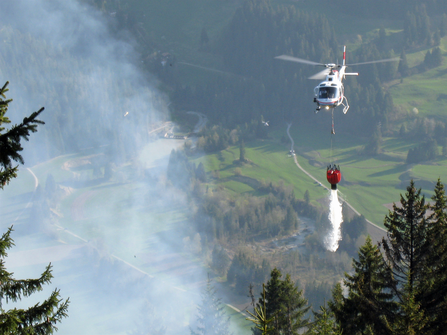 In der Nacht von Donnerstag auf Freitag stand die Feuerwehr mit einer Brandwache von bis zu 40 Personen im Einsatz. Fast die ganze Nacht über führten Traktoren Wasser ins unwegsame und sehr trockene Brandgebiet hinauf. Seit Freitagmorgen stehen erneut zwei Löschhelikopter im Einsatz. Zurzeit sind immer noch vereinzelte Glutnester vorhanden und müssen durch die Feuerwehr von Hand gelöscht werden. Ein Ende des Löscheinsatzes ist derzeit noch nicht absehbar.