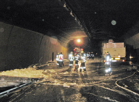 Der aus Deutschland stammende Chauffeur befand sich auf der Fahrt Richtung Süden. Mitten im Crap-Teig-Tunnel brach in seinem Fahrzeug, das mit Ziegelsteinen beladen war, ein Feuer aus. Der 47-jährige Chauffeur konnte die Führerkabine rechtzeitig verlassen und sich ausserhalb des Tunnels in Sicherheit bringen. Ein nachfolgender Lastwagen-Chauffeur stoppte sein Fahrzeug aufgrund der Rauchentwicklung und konnte den Tunnel ebenfalls rechtzeitig verlassen. Die Feuerwehr Thusis, welche mit 25 Personen ausgerückt war, hatte den Brand schnell unter Kontrolle, konnte jedoch nicht verhindern, dass die Führerkabine vollständig ausbrannte. In Mitleidenschaft gezogen wurden auch die Wände und die Infrastruktur des Tunnels. Die Höhe des Schadens kann zurzeit noch nicht beziffert werden. Auch die Brandursache ist noch unbekannt, die bisherigen Erkenntnisse deuten auf einen technischen Defekt hin. Während der Aufräumarbeiten bleibt die A13 zwischen Thusis und Zillis gesperrt. Der Verkehr wird über die Hauptstrasse umgeleitet, der Schwerverkehr in San Bernardino und Thusis angehalten beziehungsweise über die Gotthardroute umgeleitet. Die Sperrung des Tunnels dauert voraussichtlich noch bis morgen Dienstag um 12.00 Uhr.