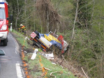 Der Chauffeur aus Italien musste wegen des geschlossenen Crap-Teig-Tunnels die Kantonsstrasse benutzen. Ausgangs einer Rechtskurve bei der Örtlichkeit Rania geriet er mit seinem Fahrzeug zu weit nach rechts und fuhr auf das Erdreich am Strassenrand. Der Lastwagen begann zu rutschen und kippte schliesslich nach rechts über die Böschung hinunter. Die aufgebotene Feuerwehr Thusis sicherte den Lastwagen, sodass er nicht weiter abrutschen konnte. Zudem musste sie auslaufenden Treibstoff binden.