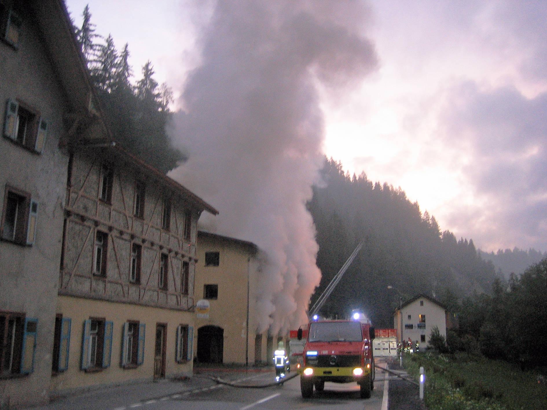 Der Brandausbruch wurde kurz nach zwei Uhr in der Nacht gemeldet. Die Feuerwehren Pisoc und Muttler rückten mit rund 80 Personen aus und hatten das Feuer rasch unter Kontrolle. Sie konnten jedoch nicht verhindern, dass das Haus vollständig ausbrannte. Personen kamen keine zu Schaden, da das Haus seit einiger Zeit leer steht. Wegen der starken Rauchentwicklung und der immer wieder aufflammenden Glutnester dauerten die Löscharbeiten bis in den Morgen hinein.