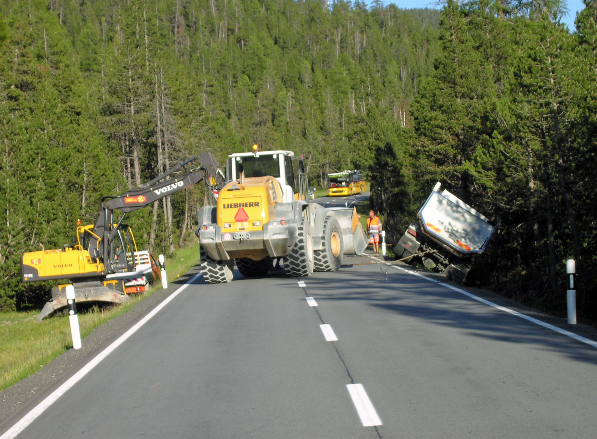 Der 57-jährige Chauffeur fuhr mit seinem Lastwagen von Zernez Richtung Ofenpass. Auf einer langen Geraden kurz vor Ova Spin geriet er zu weit nach rechts über den Fahrbahnrand hinaus. Das Fahrzeug kippte um und der geladene Teer floss auf eine bewaldete Böschung aus. Der Chauffeur wurde leicht am Kopf verletzt und musste ins Spital gebracht werden. Da der Atemlufttest bei ihm positiv ausgefallen war, wurde eine Blutprobe angeordnet. Mit Hilfe von zwei Baggern konnte der ausgelaufene Teer weggeräumt werden. Dadurch kam es während rund eineinhalb Stunden zu Verkehrsbehinderungen. Der gesamte Schaden wird nach ersten Erkenntnissen auf rund 50‘000 Franken geschätzt.