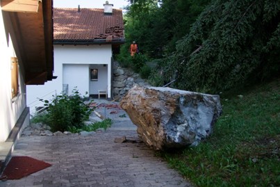 Nach einer missglückten Sprengung sind am Mittwochmorgen fünf Gesteinsbrocken mit einem Gesamtgewicht von rund 20 Tonnen auf die Ferienhaussiedlung Sot Spondas bei Savognin gestürzt. Personen kamen glücklicherweise nicht zu Schaden, obwohl wegen der Ferien derzeit praktisch alle Häuser bewohnt sind. Der Sachschaden hingegen dürfte 100‘000 Franken übersteigen.