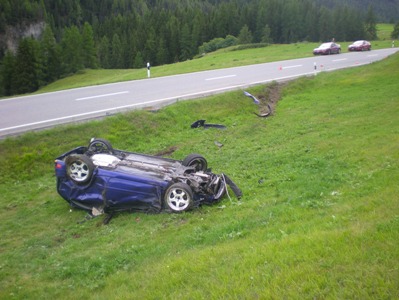 Eine Fahrzeugkolonne fuhr vom Oberengadin in Richtung Zernez. Auf einer geraden Strecke setze ein Lenker zum Überholen von zwei vor ihm fahrenden Fahrzeugen an. Als er auf der Höhe des ersten zu überholenden Fahrzeuges war, scherte dieser ebenfalls zum Überholen aus. Beim Versuch einen Unfall zu verhindern geriet das bereits überholende Fahrzeug ins Schleudern und fuhr über den Strassenrand hinaus. In der Wiese überschlug sich das Fahrzeug mehrmals und kam auf dem Dach liegend zum Stillstand. Der Lenker dieses Fahrzeuges erlitt Kopfverletzungen und musste mit der Rega ins Kantonsspital Chur überflogen werden. Am Fahrzeug entstand Totalschaden.