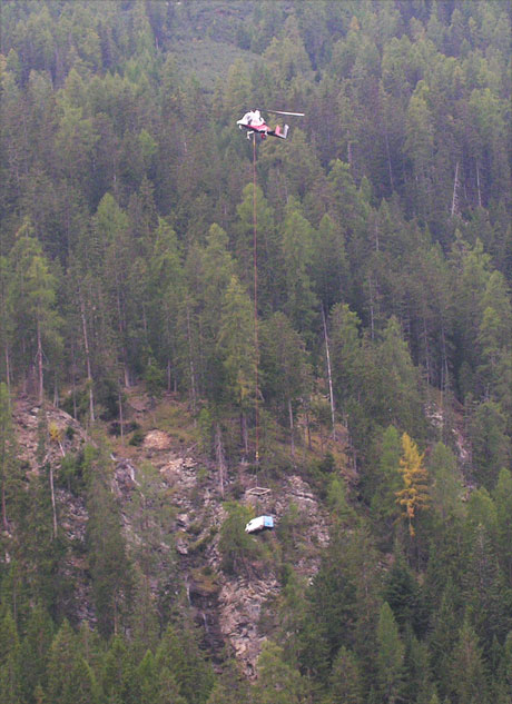 Der Fahrer wurde nicht verletzt und organisierte selber Hilfe. Doch die ausgerückte Feuerwehr von Bergün konnte den Kleinbus nicht bergen, denn der Wanderweg war so schmal, dass kein Abschleppfahrzeug zum Unfallort gelangen konnte. So blieb nur noch die Bergung aus der Luft: Ein Helikopter des Typs Kaman 1200 Kamax, der speziell für Transporte von Aussenlasten entwickelt worden ist, befreite das rund drei Tonnen schwere Fahrzeug am Freitagnachmittag aus seiner misslichen Lage. Gemäss eigenen Aussagen hatte der Lenker mehrmals versucht umzukehren, als er feststellte, dass er auf dem falschen Weg war. Da ihm dies nicht gelang, fuhr er weiter und hoffte, der Weg führe weiter vorne wieder zurück auf die Hauptstrasse, die er in einiger Entfernung immer wieder sah. Dass der Wanderweg mit Fahrzeugen nicht befahren werden kann, erfuhr der 37-Jährige erst später. Am Fahrzeug entstand nur geringer Sachschaden, die Kosten für die Bergung dürften sich aber auf mehrere tausend Franken belaufen.