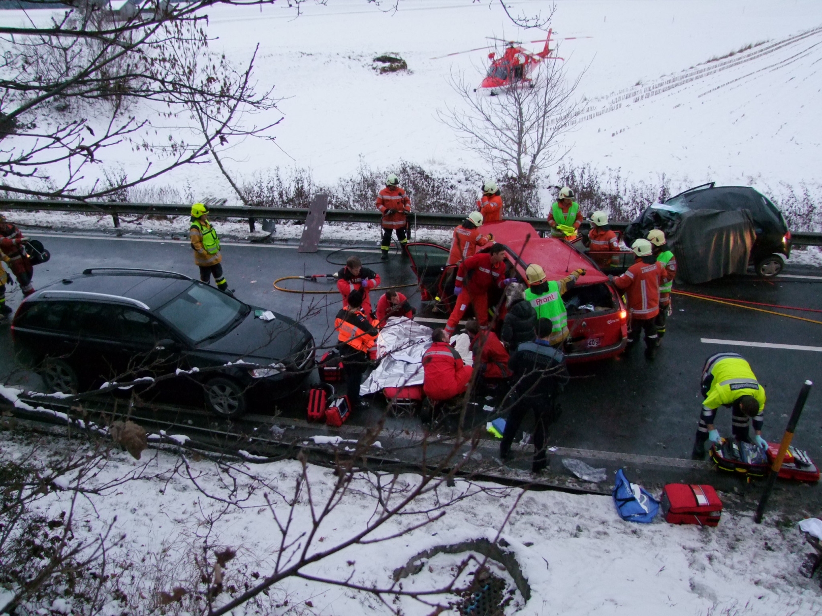 Ein in Richtung Landquart fahrender Personenwagenlenker geriet kurz nach dem Anschluss Grüsch auf die linke Fahrbahn. Dort kam es mit einem entgegenkommenden Personenwagen zu einer heftigen Frontalkollision. Die 27jährige Lenkerin des entgegenkommenden Fahrzeuges erlitt dabei tödliche Verletzungen. Alle fünf Personen im Alter zwischen 19 und 28 Jahren, welche sich im in Richtung Landquart fahrenden Fahrzeug befanden, wurden verletzt. Drei davon erlitten schwere Verletzungen. Zur Bergung der Fahrzeuginsassen mussten beide Personenwagen mit Brechwerkzeug geöffnet werden. Im Einsatz standen die Stützpunktfeuerwehr Landquart sowie die Feuerwehr Mittelprättigau. Mit der Rega und mit Ambulanzfahrzeugen der Rettung Chur und Schiers wurden die Verletzten ins Spital Schiers sowie ins Kantonsspital Graubünden nach Chur überführt.