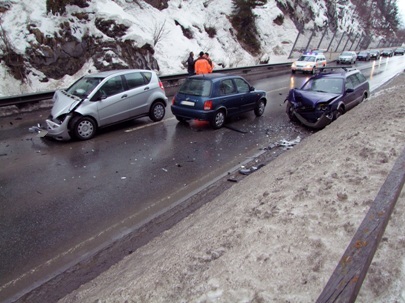 Der in Richtung St. Moritz fahrende Automobilist geriet rund 50 Meter nach der Ausfahrt Celerina mit seinem Personenwagen auf die Gegenfahrbahn. Dort kam es mit dem entgegenkommenden Autofahrer zur heftigen Frontalkollision. Beide Fahrzeuge wurden total beschädigt und blockierten die Strasse. Ein weiterer, von St. Moritz in Richtung Celerina fahrender Automobilist, touchierte mit seinem Wagen schliesslich noch eines der inzwischen still stehenden Unfallfahrzeuge. Dieses Fahrzeug wurde jedoch nur leicht beschädigt.