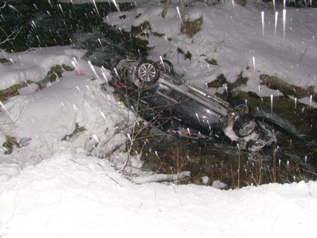 Ein 28-jähriger Mann fuhr zusammen mit seiner 47-jährigen Beifahrerin von Fuldera Richtung Valchava. Im Gebiet Punt Cotschna auf der Höhe des Werkhofs des Tiefbauamtes kam das Fahrzeug auf der schneebedeckten Strasse ins Rutschen. Es überquerte die Gegenfahrbahn, geriet über den Strassenrand hinaus und stürzte rund 30 Meter die Böschung hinunter. Schliesslich kam es auf dem Dach liegend im Bachbett des Rombachs zum Stillstand. Der Lenker erlitt leichte Schnittverletzungen an den Händen, die Beifahrerin blieb unverletzt. Beide Personen konnten das Fahrzeug aus eigener Kraft verlassen und über einen Passanten die Polizei alarmieren. Am Personenwagen entstand Totalschaden. Zur Bergung musste ein Traktor mit Winde eingesetzt werden.