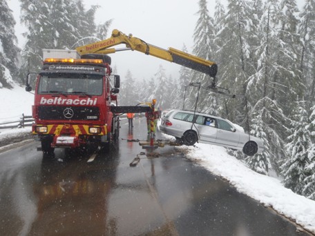 Der Automobilist war von Brail in Richtung Zernez unterwegs. Es herrschte sehr starker Schneefall und entsprechend schlecht war die Sicht. Um an zwei entgegenkommenden Fahrzeugen sicher vorbei zu kommen, fuhr er zur Sicherheit noch etwas weiter nach rechts. Das Fahrzeug geriet jedoch über den rechten Fahrbahnrand hinaus und rutschte ab. Es wurde schliesslich von Bäumen und Sträuchern gebremst. Der Wagen konnte erst am Montagmorgen mit Hilfe eines Kranlastwagens geborgen werden.