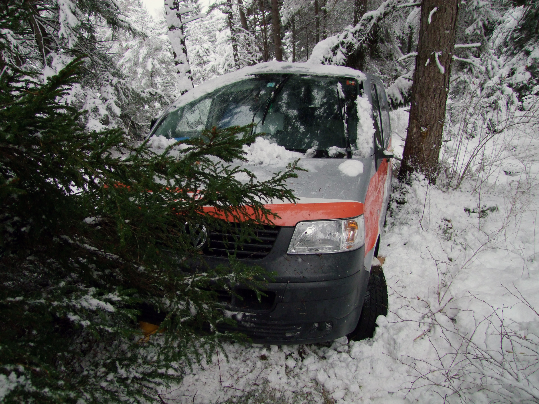 Der Lieferwagen war auf der Verbindungsstrasse von Laax Richtung Sagogn unterwegs. In einer leichten Linkskurve kam das Fahrzeug auf der schneebedeckten Fahrbahn ins Rutschen und geriet über den Fahrbahnrand hinaus. Anschliessend rutschte es rund vierzig Meter den Abhang hinunter und überschlug sich dabei mindestens einmal. Am Schluss kam der Wagen stark beschädigt, aber wieder auf den Rädern stehend in den Bäumen zum Stillstand. Der Fahrer wurde leicht verletzt und begab sich in ärztliche Behandlung. Zur Bergung des Lieferwagens musste ein Kranfahrzeug aufgeboten werden, die Strasse war für rund eine Stunde gesperrt.