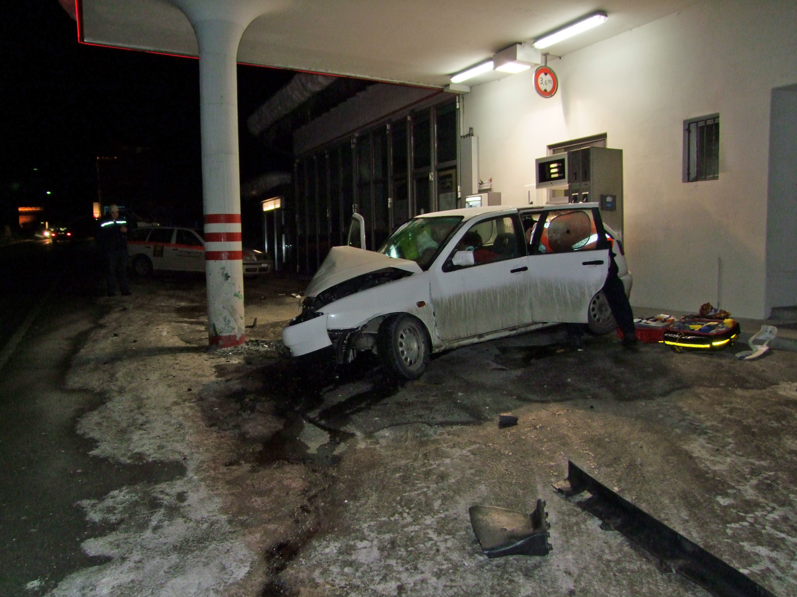 Der Mann befuhr die Prättigauerstrasse A28 taleinwärts in Richtung Saas. Eingangs Küblis, bei der Örtlichkeit Dalvazza, kam er mit seinem Fahrzeug in einer leichten Linksbiegung rechts von der Strasse ab. Dort kollidierte das Fahrzeug mit einem Betonpfeiler der Tankstellenüberdachung. Das Fahrzeug drehte sich anschliessend um die eigene Achse und kam rückwärts stehend unmittelbar vor einer Tanksäule zum Stillstand.