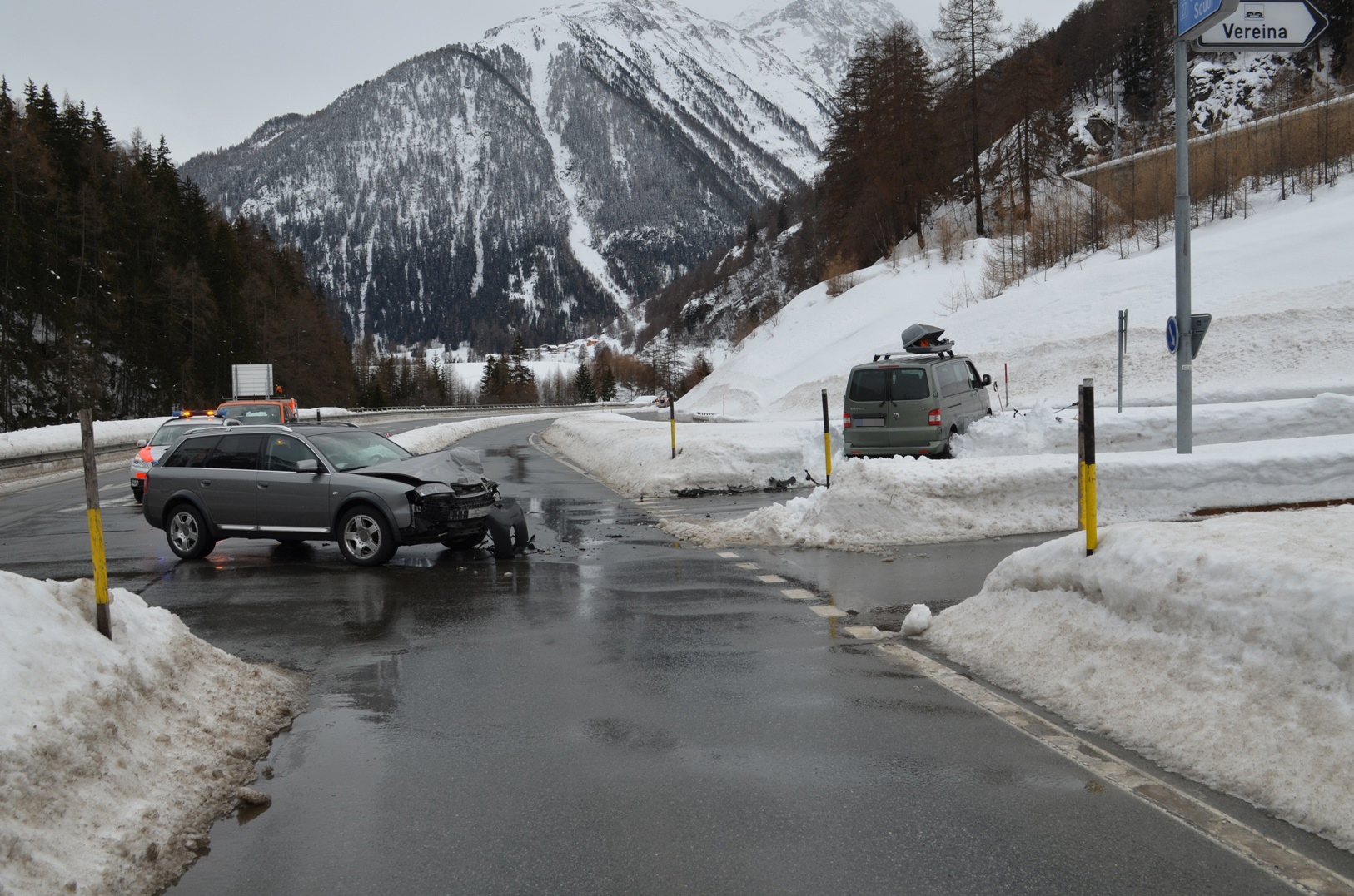 Ein von Zernez herkommender Personenwagenlenker fuhr über die Engadinerstrasse in Richtung Scuol. Bei der Abzweigung zum Autoverlad Sagliains wollte er nach links abbiegen. Dabei übersah er einen korrekt entgegenkommenden Kleinbus. In der Folge kam es zu einer seitlich-frontalen Kollision zwischen den beiden Fahrzeugen. Die leichtverletzte Mitfahrerin des abbiegenden Wagens wurde mit der Ambulanz ins Spital nach Scuol überführt. An den Unfallfahrzeugen entstand erheblicher Sachschaden.