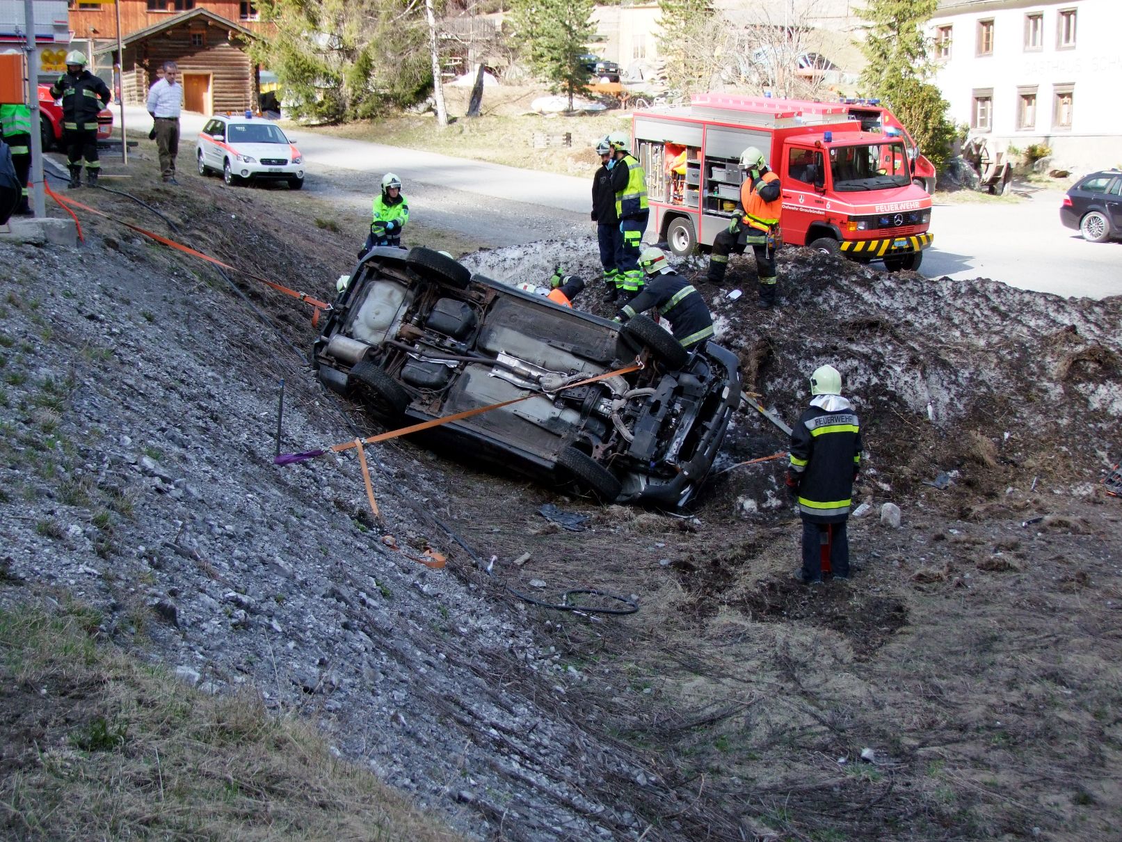 Am Freitagnachmittag hat sich auf der Landwasserstrasse bei Davos ein Personenwagen überschlagen. Der Lenker, welcher alleine unterwegs war, hat sich dabei nur leicht verletzt.