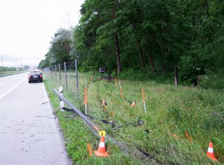 Der 22-jährige Mann war allein Richtung Süden unterwegs. Kurz nach dem Anschluss Chur Nord geriet er rechts von der Strasse ab und durchbrach den Wildschutzzaun. Nach rund 90 Metern kam er im angrenzenden Waldstück zum Stillstand. Der Mann konnte das total beschädigte Fahrzeug unverletzt verlassen. Während rund eineinhalb Stunden musste der Verkehr einspurig an der Unfallstelle vorbeigeführt werden.