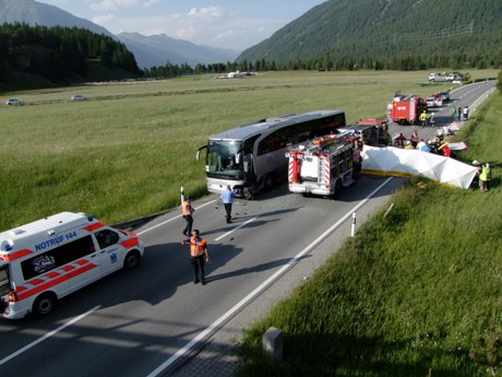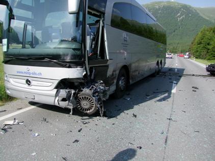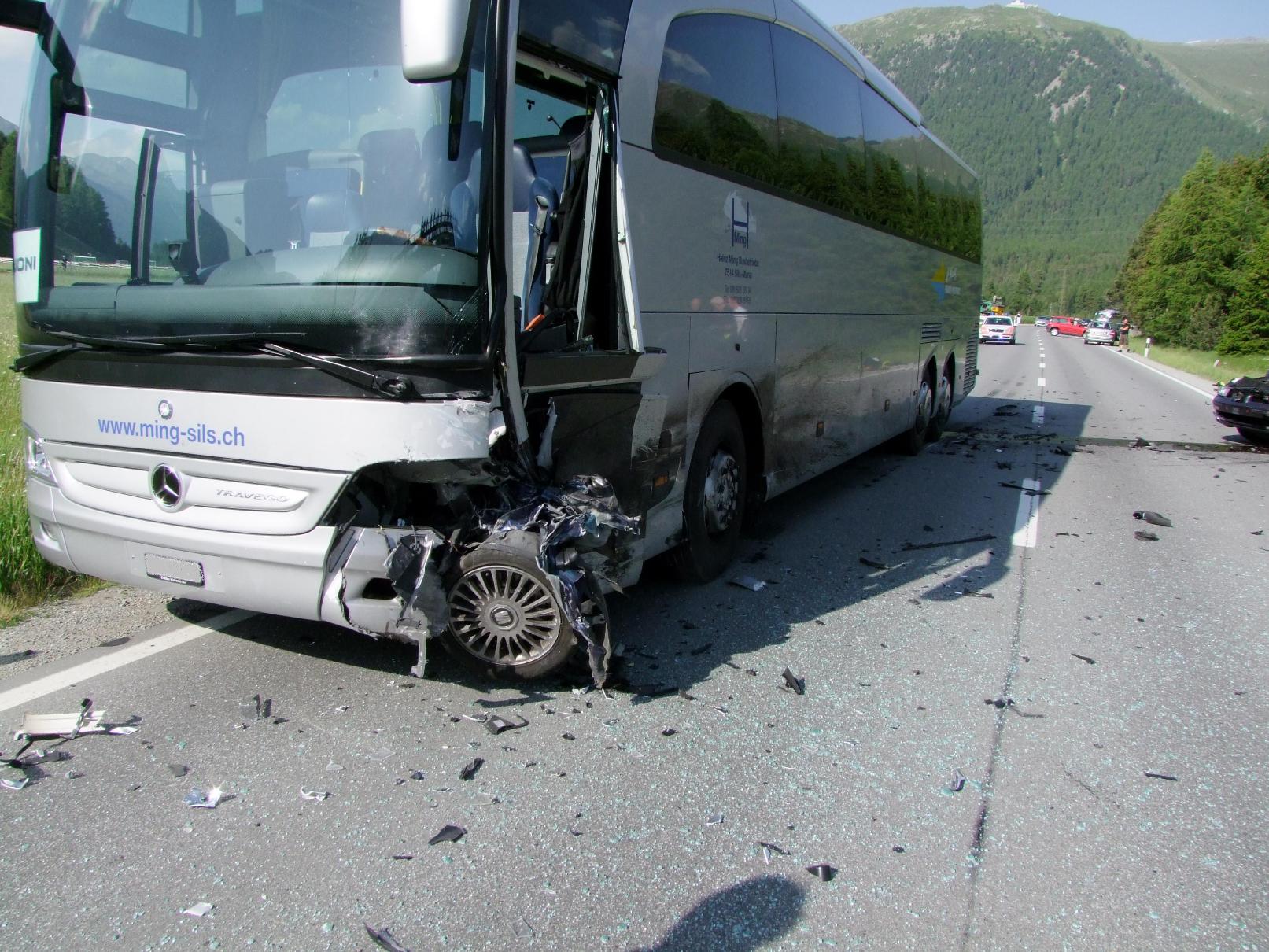Celerina: Heftige Frontalkollision zwischen Personenwagen und Reisecar