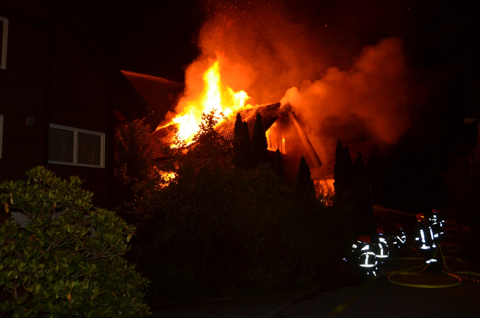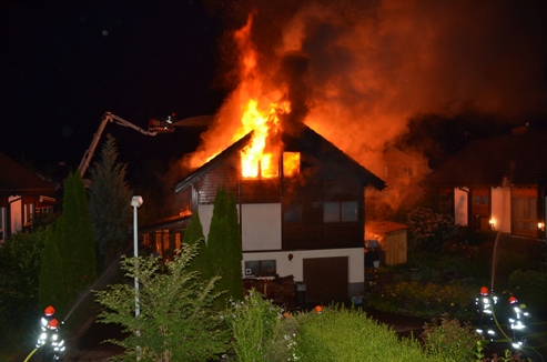 Um 03.30 Uhr wurde der Notruf- und Einsatzzentrale der Kantonspolizei Graubünden gemeldet, dass ein zweistöckiges Einfamilienhaus im Seidengut in Vollbrand stand. Die drei Bewohner konnten rechtzeitig das brennende Haus verlassen und sich in Sicherheit bringen. Vorübergehend mussten auch die Bewohner der angrenzenden Häuser evakuiert werden. Die ausgerückte Stützpunktfeuerwehr Chur konnte zwar ein Übergreifen der Flammen auf die angrenzenden Wohnhäuser vermeiden, jedoch das Einfamilienhaus selber konnte sie nicht mehr retten. Es brannte vollständig aus. Die gesamte Stützpunktfeuerwehr Chur mit rund 60 Mann, die Stadtpolizei Chur und die Kantonspolizei Graubünden standen mit einem Grossaufgebot im Einsatz.