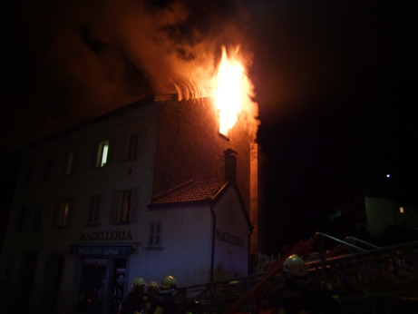 Il solaio come pure il secondo piano dell’immobile sono andati completamente distrutti, mentre che la macelleria che si trova al piano terra non é stata interessata dal sinistro ma l’acqua usata per lo spegnimento ha provocato dei danni anche in questa parte dello stabile.