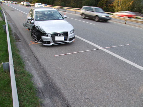 Ein Automobilist fuhr von Reichenau kommend über die A 13 in Richtung Chur. Kurz vor der Autobahnausfahrt Chur Süd hatte er eine Panne an seinem Fahrzeug. Deshalb musste er sein Auto auf dem Pannenstreifen abstellen. Wenig später geriet ein ebenfalls in Richtung Norden fahrender Fahrzeuglenker mit seinem Personenwagen zu weit nach rechts, worauf er mit dem stehenden Auto heftig kollidierte. Das auffahrende Fahrzeug prallte mit der rechten vorderen Seite in das linke Heck des auf dem Pannenstreifen stehenden Personenwagens. Der Lenker des Pannenfahrzeuges stieg glücklicherweise kurz vor der Kollision aus seinem Fahrzeug aus und stand einige Meter hinter seinem Fahrzeug. Bei diesem Unfall wurde niemand verletzt. Beide Fahrzeuge wurden total beschädigt.