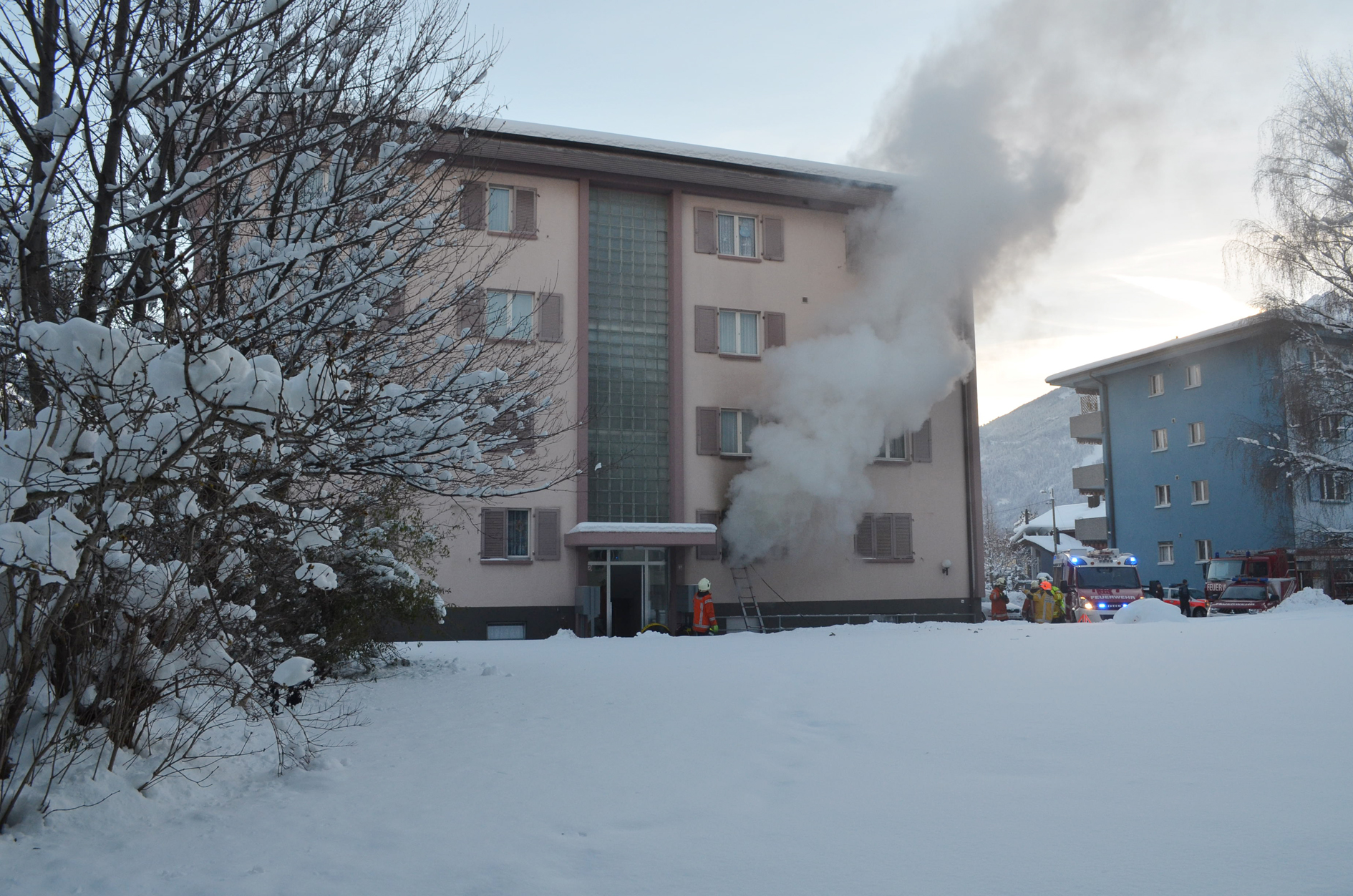 Der Brand brach im Kinderzimmer der Wohnung im ersten Stock aus und wurde kurz nach halb drei Uhr gemeldet. Die Frau, die zu diesem Zeitpunkt in der Wohnung war, konnte ihren schlafenden Sohn rechtzeitig aus dem brennenden Zimmer retten. Die beiden wurden mit Verdacht auf Rauchvergiftung ins Kantonsspital Graubünden nach Chur gebracht. Die Stützpunktfeuerwehr Landquart konnte den Brand rasch löschen. An der Wohnung entstand erheblicher Sachschaden, die Brandursache ist noch unklar. Die anderen Wohnungen im Mehrfamilienhaus wurden nicht in Mitleidenschaft gezogen.