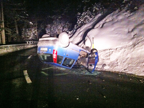 Kurz vor 18.30 Uhr fuhr eine Frau von Samnaun in Richtung Martina. Vor demAlpetta Tunnel geriet ihr Personenwagen ins Schleudern und prallte in die bergseitige Böschung. Das Auto überschlug sich und kam auf dem Dach liegend zum Stillstand.
