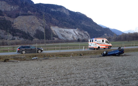 Am Freitagabend hat sich auf der Nordspur der Autobahn A13 bei Trimmis ein Selbstunfall mit einem Personenwagen ereignet. Eine Person wurde verletzt.