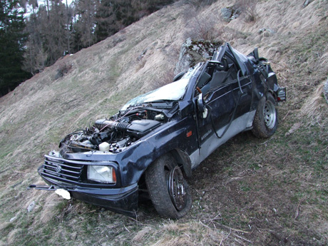 Über die Forststrasse fuhr der 59-jährige Mann mit seinem Personenwagen von Sta. Maria aus in Richtung Terza. Auf einer Höhe von ungefähr 1‘600 Meter über Meer blieb er in einer Harnadelkurve im Schnee stecken. Rückwärts fahrend versuchte der Lenker aus der misslichen Lage herauszukommen. In der Folge geriet er über den Fahrbahnrand hinaus und stürzte den steilen Abhang hinunter. Sich mehrmals überschlagend kam das Fahrzeug nach rund 110 Meter total beschädigt auf den Rädern zum Stillstand. Der Fahrer konnte sich selbständig aus dem Wrack befreien und mit seinem Mobiltelefon einen Freund benachrichtigen. Dieser alarmierte die Rega, welche den Verunfallten aus dem schwer zugänglichen Gelände bergen konnte.