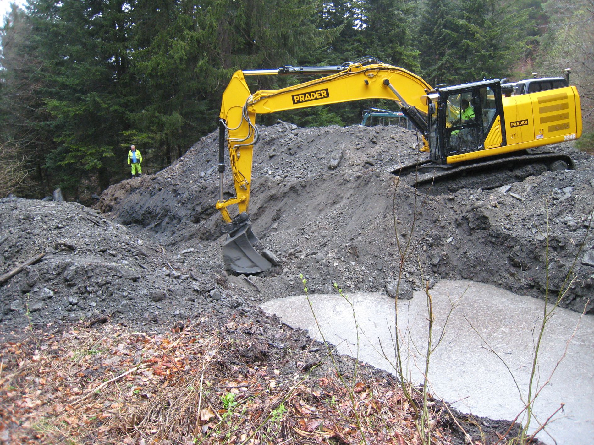 Die Einsatzkräfte haben am Samstag verschiedene Entlastungsarbeiten entlang des Bachlaufes ausgeführt und das Auffangbecken laufend von ankommendem Schwemmholz befreit. Ausserdem wurden Massnahmen ergriffen, um die Geröllmassen so zu lenken, dass möglichst geringe Schäden entstehen. Am Samstagmittag wurde ein Entlastungsgraben in Betrieb genommen, über den nun ein Teil des Wassers abfliessen kann.