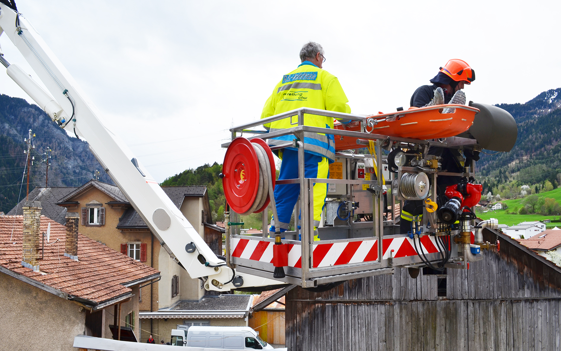 Der Mann war dabei Isolationsplatten auf der Dachunterseite anzubringen. Um diese Arbeiten auszuführen, legte er eine Schaltafel auf eine Balkenkonstruktion. Aus noch unbekannten Gründen kippte die Schaltafel und der 28-Jährige stürzte rund drei Meter in die Tiefe. Durch den Aufprall zog er sich Verletzungen am Rücken und am Brustkorb zu. Für die Bergung aus dem dritten Obergeschoss wurde der Hubretter der Feuerwehr Chur aufgeboten. Mit der Ambulanz wurde der Verletzte ins Kantonsspital Graubünden nach Chur überführt.