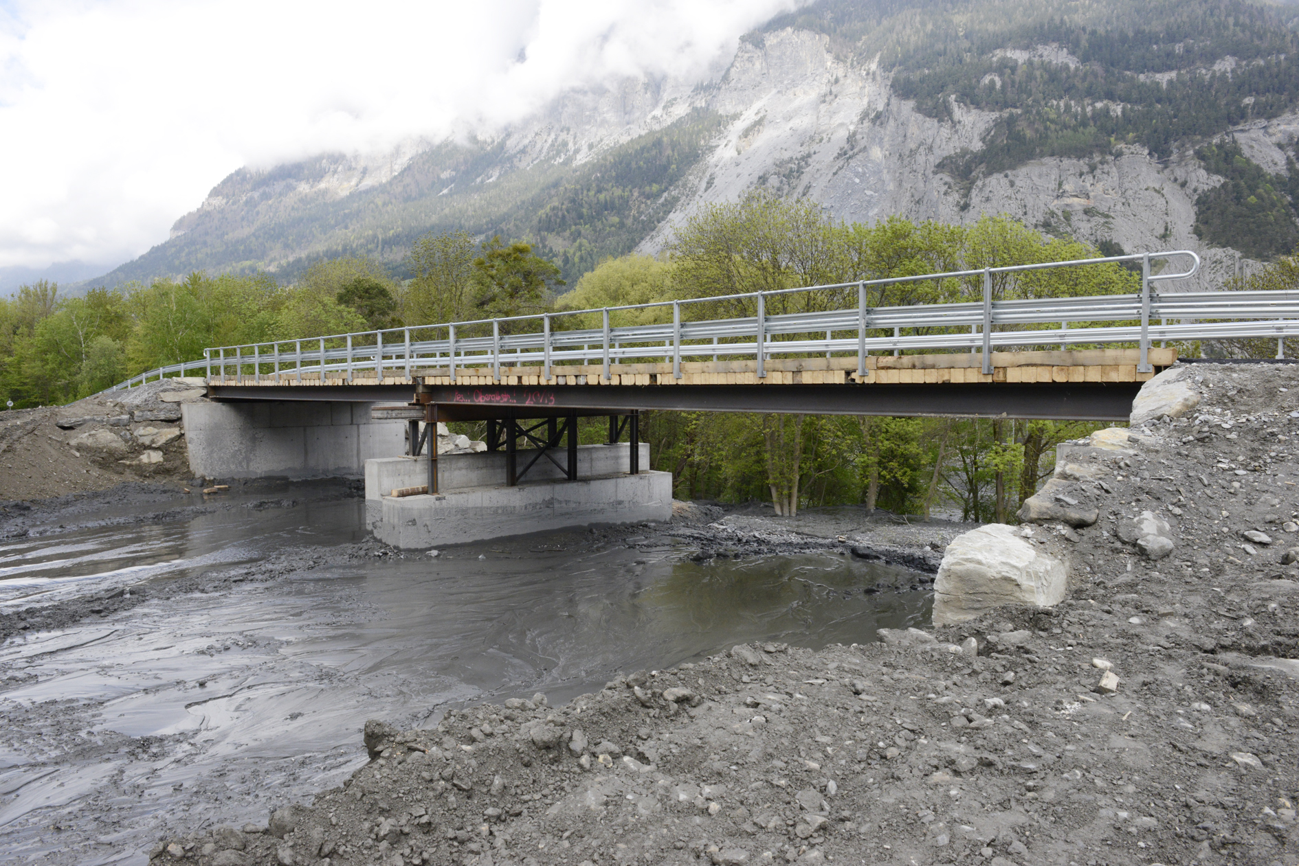 Die Kantonsstrasse zwischen Chur und Domat/Ems ist seit Samstagnachmittag 14 Uhr wieder offen. Das Tiefbauamt Graubünden hat die Notbrücke über den vom Murgang überfluteten Strassenabschnitt fertiggestellt. Nach zweiwöchiger Sperre konnte somit die wichtige Verbindung wieder dem Verkehr übergeben werden. Die restlichen Arbeiten rund um den kontinuierlichen Murgang im Val Parghera Tobel dauern unverändert an.