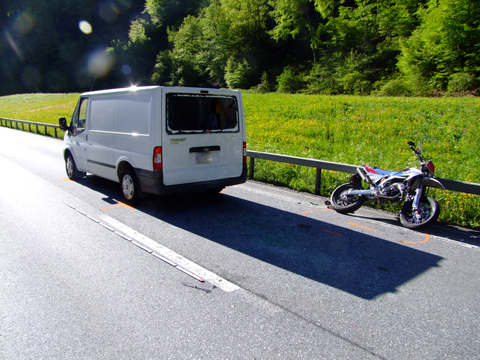 Motorrad wurde dabei total und der Personenwagen erheblich beschädigt.