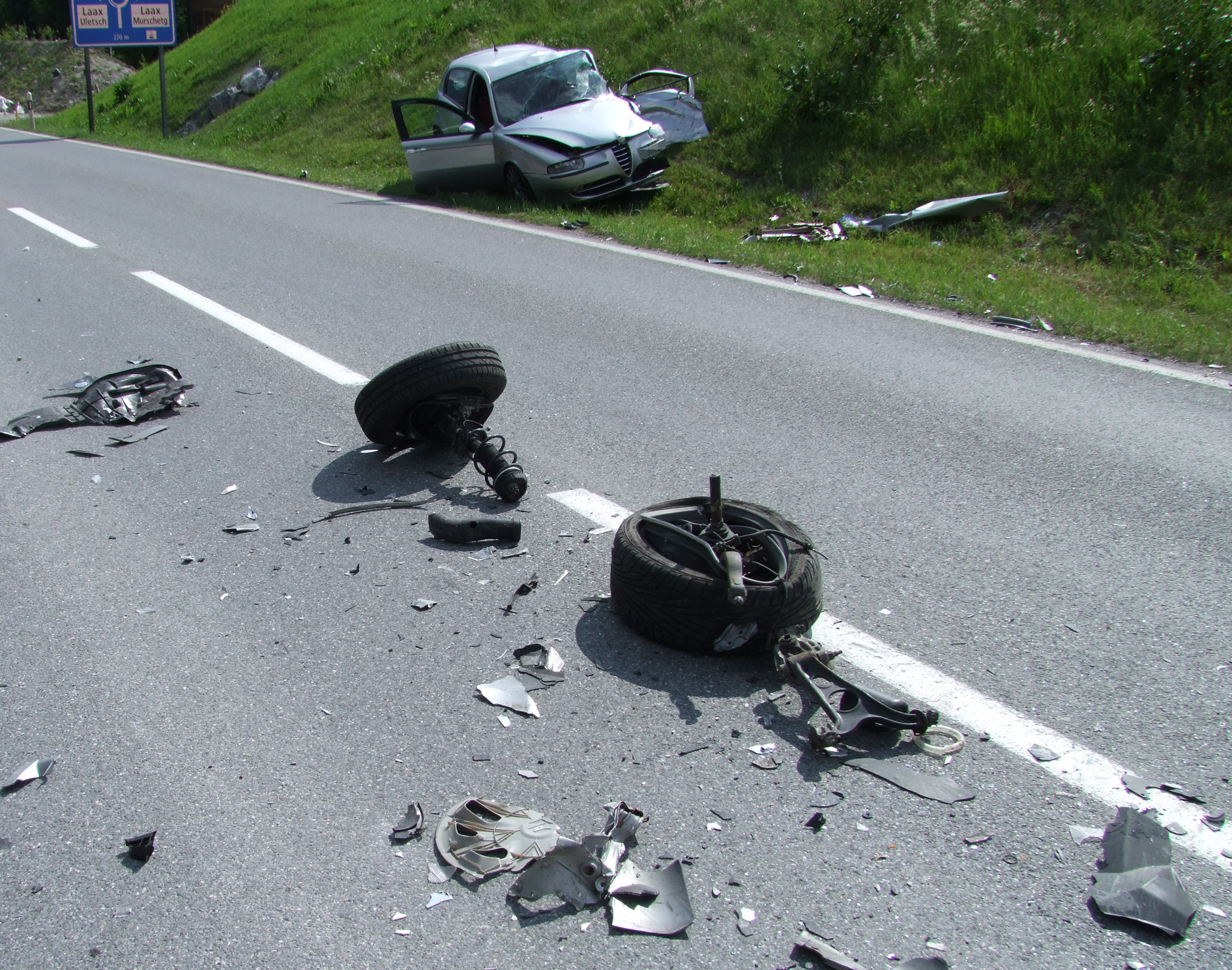 Herumliegende Fahrzeugteile zeigen, wie heftig die Kollision war.