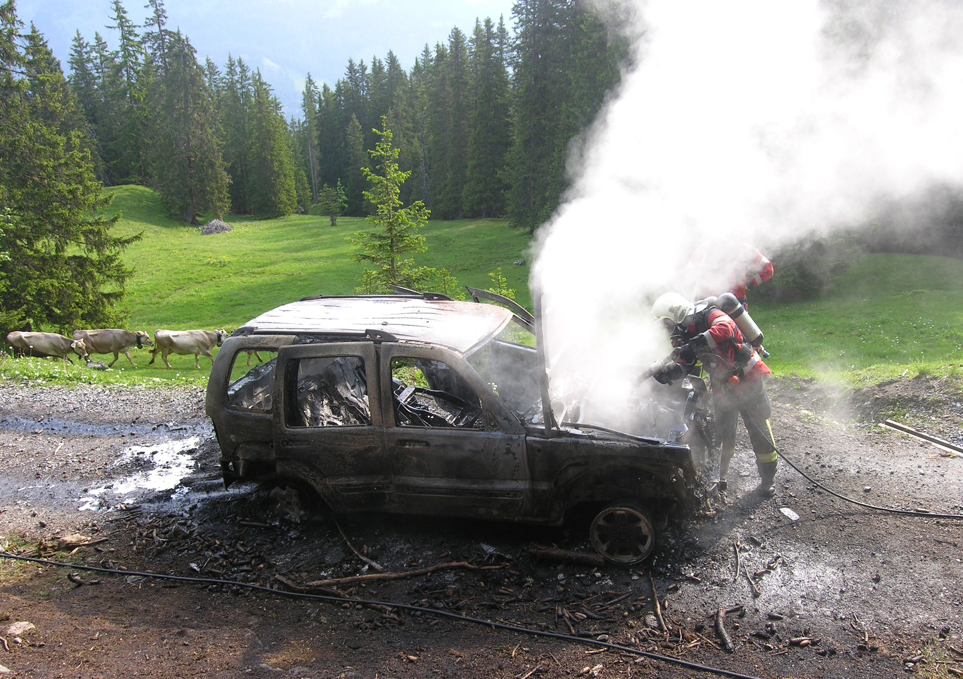 Das Fahrzeug war mit einem Anhänger unterwegs, um zwei Kühe auf die Alp zu fahren. Nach der Serneuser Schwendi, bei der Örtlichkeit Cavadürli, stellte der Lenker im vorderen Teil des Fahrzeugs Rauch fest. Als er nachschaute, schlugen Flammen aus dem Motorraum. Dem Mann gelang es, den Anhänger mit den Kühen abzuhängen und die Tiere in Sicherheit zu bringen. Die Feuerwehr Klosters konnte das Fahrzeug löschen, es brannte jedoch komplett aus. Um den ausgelaufenen Treibstoff und das Löschwasser fachgerecht zu entsorgen, wurde das Amt für Natur und Umwelt (ANU) aufgeboten. Weitere Bauern, die ihre Tiere ebenfalls auf die Alp fahren wollten, mussten sich gedulden, bis das ausgebrannte Fahrzeug abgeschleppt war.