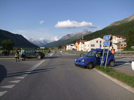 Eine 57-jährige Fahrzeuglenkerin beabsichtigte an der Resgia-Kreuzung mit ihrem Personenwagen von Zuoz kommend in Richtung Resgia zu fahren. Gleichzeitig fuhr von S-chanf kommend eine Personenwagenlenkerin auf der Hauptstrasse 27 in Richtung Madulain. Die einbiegende Pw-Lenkerin übersah diese, worauf es zu einer heftigen Kollision zwischen den beiden Fahrzeugen kam. Durch den Aufprall wurde das Auto, welches auf der H27 fuhr, in den Verkehrsteiler katapultiert. Die verletzte Personenwagenlenkerin wurde durch die Strassenrettung aus dem Fahrzeug befreit und mit der Rettung Oberengadin ins Spital nach Samedan überführt. An beiden Fahrzeugen entstand grosser Sachschaden.
