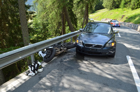Ein 22-jähriger österreichischer Motorradlenker fuhr auf der Flüelapassstrasse vom Hospiz in Richtung Susch. In den letzten Kehren oberhalb Susch, bei der Örtlichkeit Pra d‘Less, kam er vor einer unübersichtlichen Rechtskurve zu Fall und kollidierte auf der Gegenfahrbahn mit einem Personenwagen. Durch den Aufprall erlitt der Töfffahrer mittelschwere Verletzungen und wurde mit der Rega ins Spital Oberengadin nach Samedan überflogen. Während der Rettung und Unfallaufnahme musste die Flüelapassstrasse für knapp eine Stunde gesperrt werden.