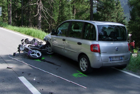 Ein in Richtung Samedan fahrender Personenwagen wollte auf der Höhe der Abzweigung Morteratsch nach links auf den Campingplatz abbiegen. Dies bemerkte ein nachfolgender Motorradlenker zu spät und versuchte auszuweichen. Dabei verlor er die Kontrolle über sein Gefährt und geriet auf die Gegenfahrbahn. In diesem Moment fuhr ein Personenwagen entgegen und es kam zur Frontalkollision. Der Motorradfahrer wurde schwer verletzt und musste mit der Rega ins Kantonsspital Graubünden nach Chur geflogen werden. Weitere Personen kamen nicht zu Schaden. Die beiden Fahrzeuge erlitten Totalschaden. Damit der Helikopter landen konnte, musste die Berninastrasse in beide Richtungen gesperrt werden.